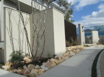 新築して何も手をつけていなかった庭を作ってほしい、とのご要望でした。道路側との仕切りがない事も気にされていました。