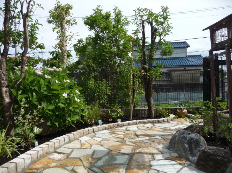 アプローチは自然石(鉄平石)にリニューアルしました。
