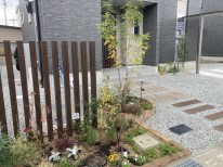 大きいマキ等の手間のかからない植栽がなくなり庭全体の見通しも良くなりました。